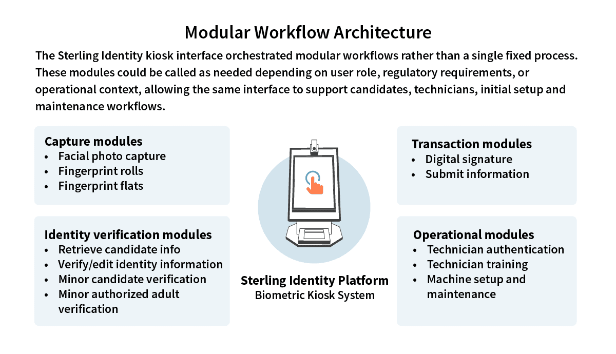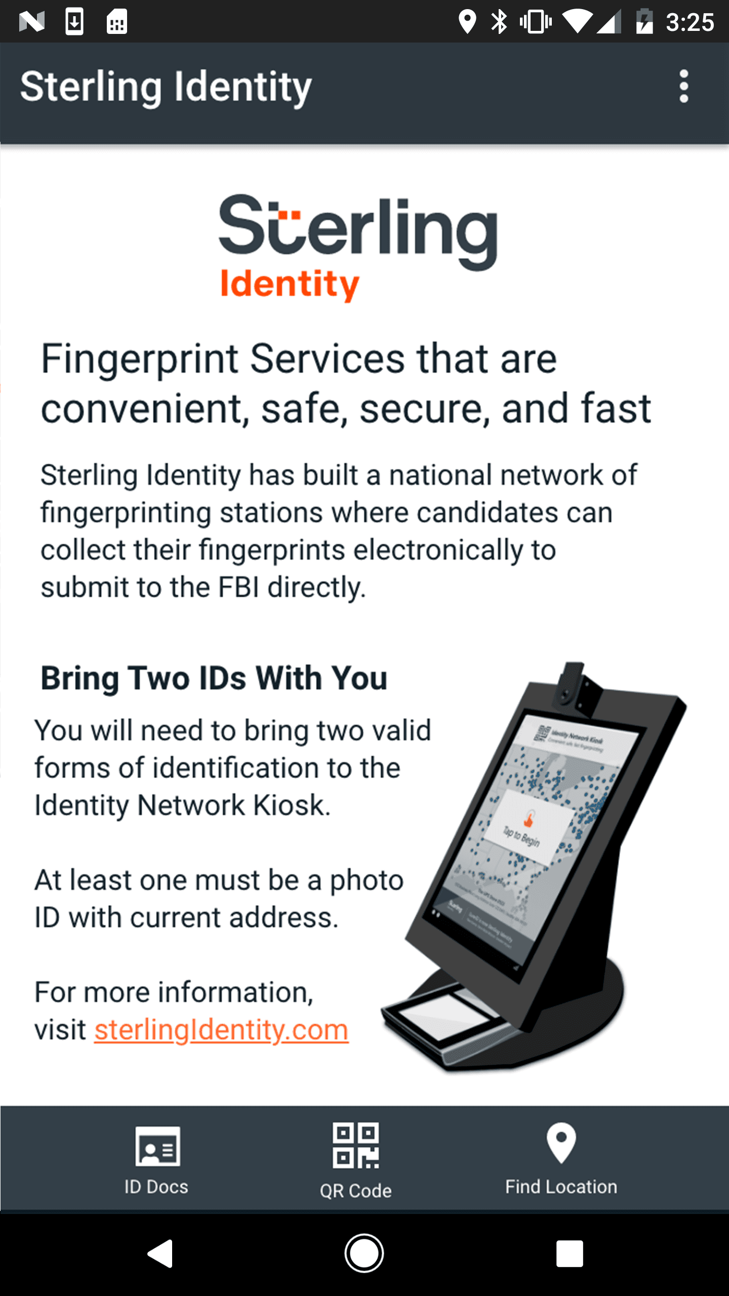 Sterling Identity Fingerprinting is a biometric identity verification platform that uses custom fingerprint capture kiosks deployed in hundreds of retail locations across the United States. The platform connects businesses, screening organizations, and federal and state identity verification systems to support regulated background check workflows.