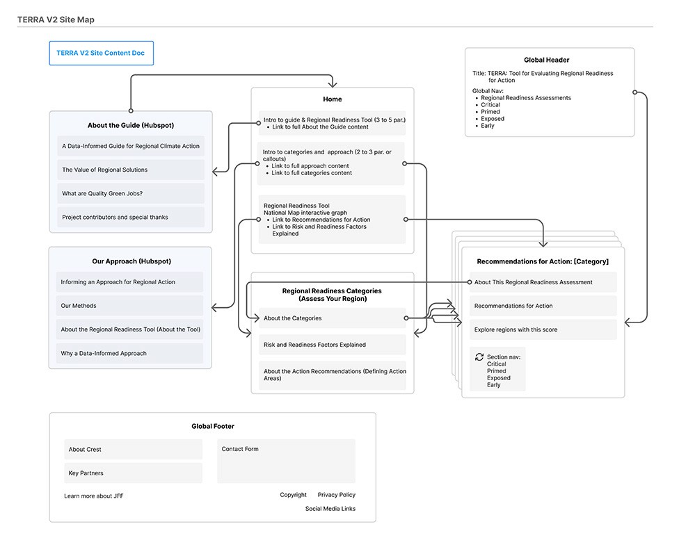 Stakeholder feedback revealed that the original presentation of TERRA’s findings made it difficult for users to interpret scores, understand regional readiness, or translate insights into action. The core UX challenge was not data accuracy—but data legibility and meaning.