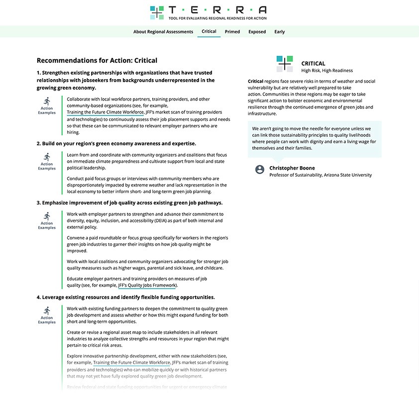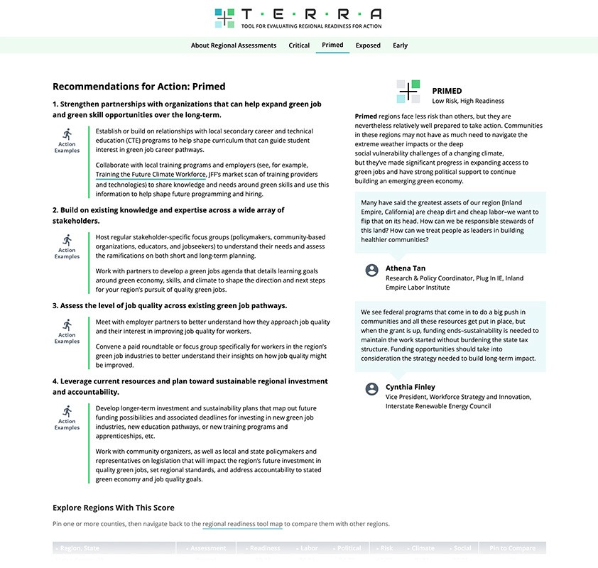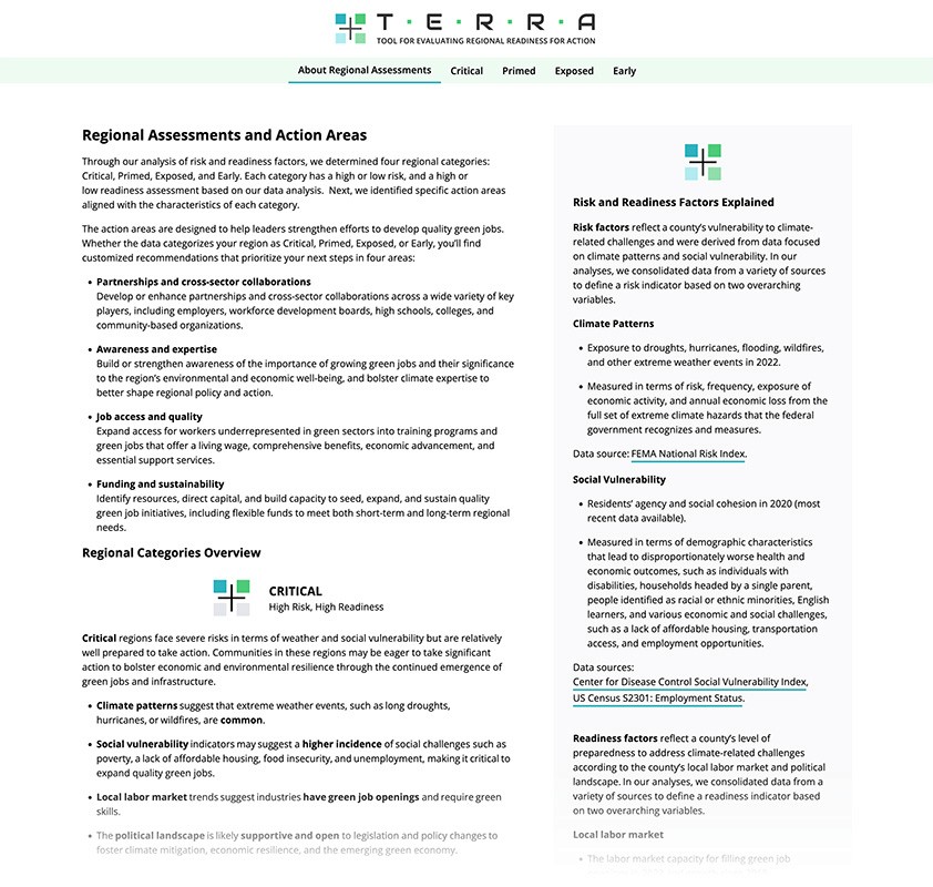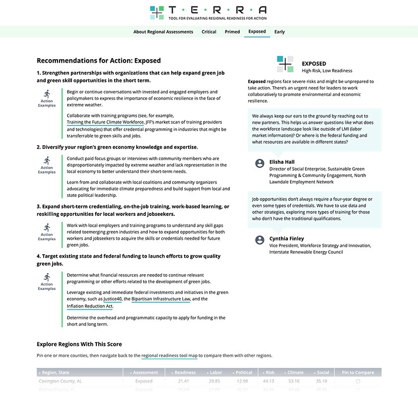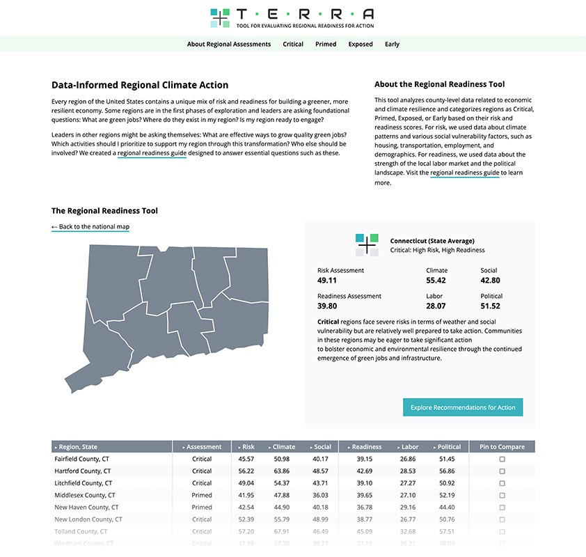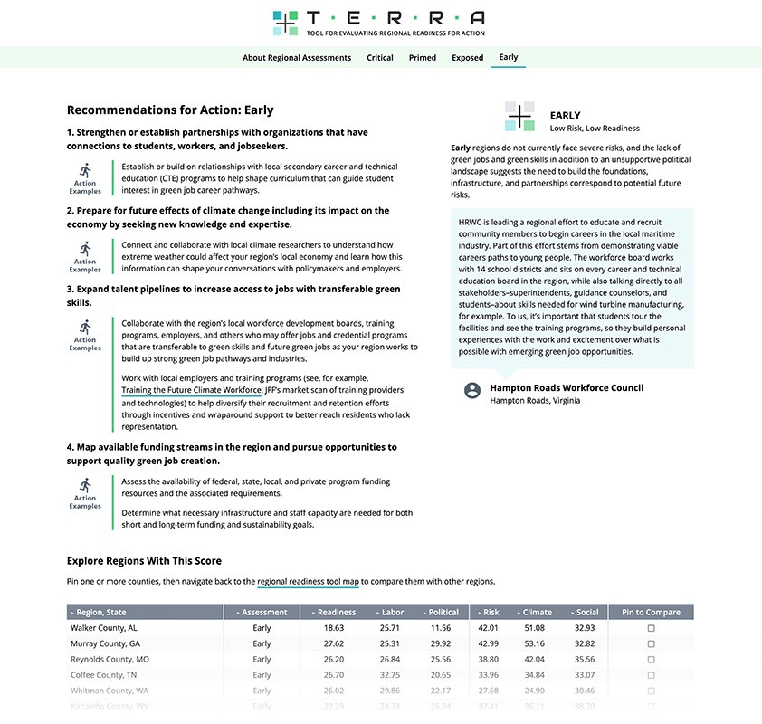 Improve the clarity, usability, and decision-making value of a complex, data-rich climate tool for regional leaders working across policy, workforce, education, and economic development.