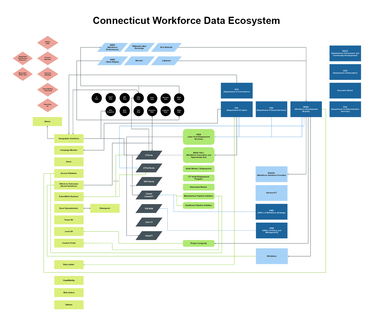 Research synthesis revealed that Connecticut did not lack workforce data. Instead, workforce information existed across numerous agency systems that had evolved independently over time.